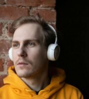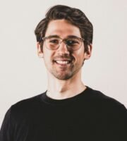 A person in a black bikini holds a skincare product near their face, surrounded by large green leaves. Their eyes are closed, and they appear relaxed and content.